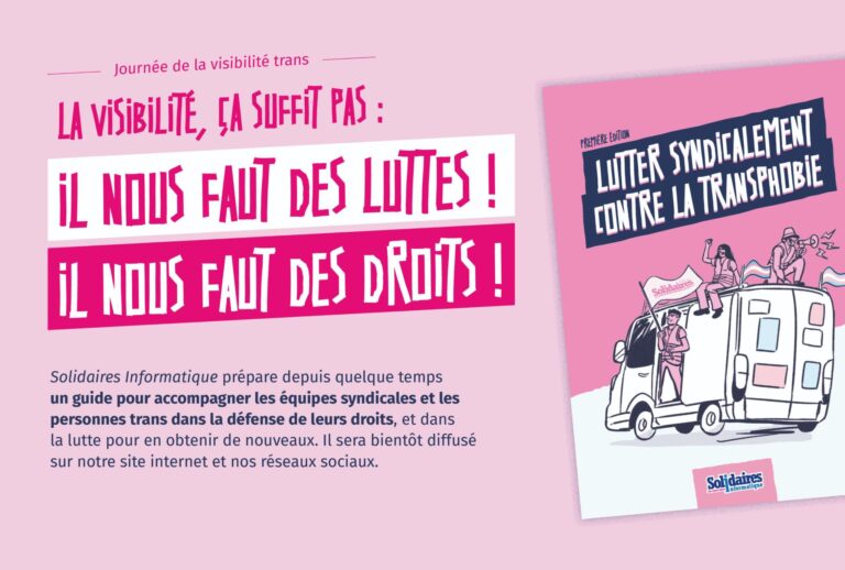 La visibilité, ça suffit pas : il nous faut des luttes ! il nous faut des droits ! Solidaires Informatique prépare depuis quelque temps un guide pour accompagner les équipes