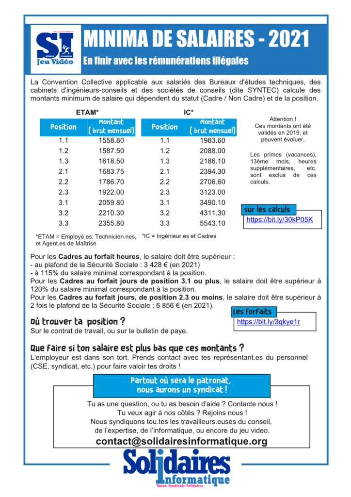 Fiche Solidaires Informatique numéro 2: Les minima de salaires SYNTEC 2021